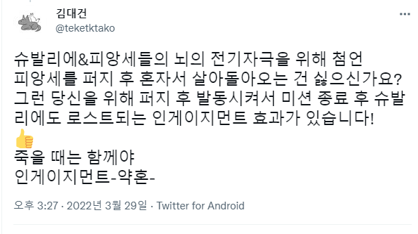 마침 타임라인에 계시던 T님도 같은 트윗을 보고 비명을 지르고 계셨던 것입니다.
